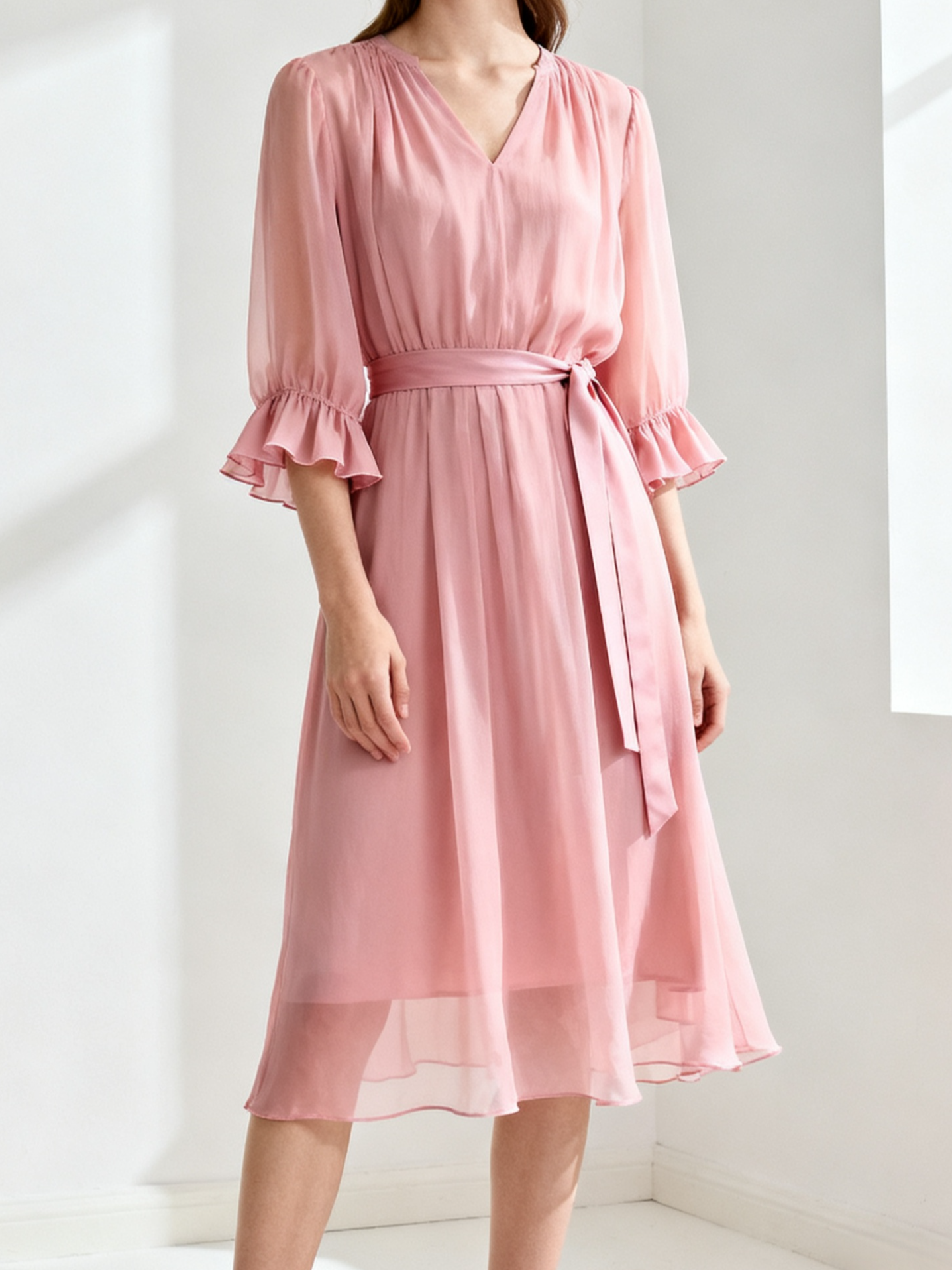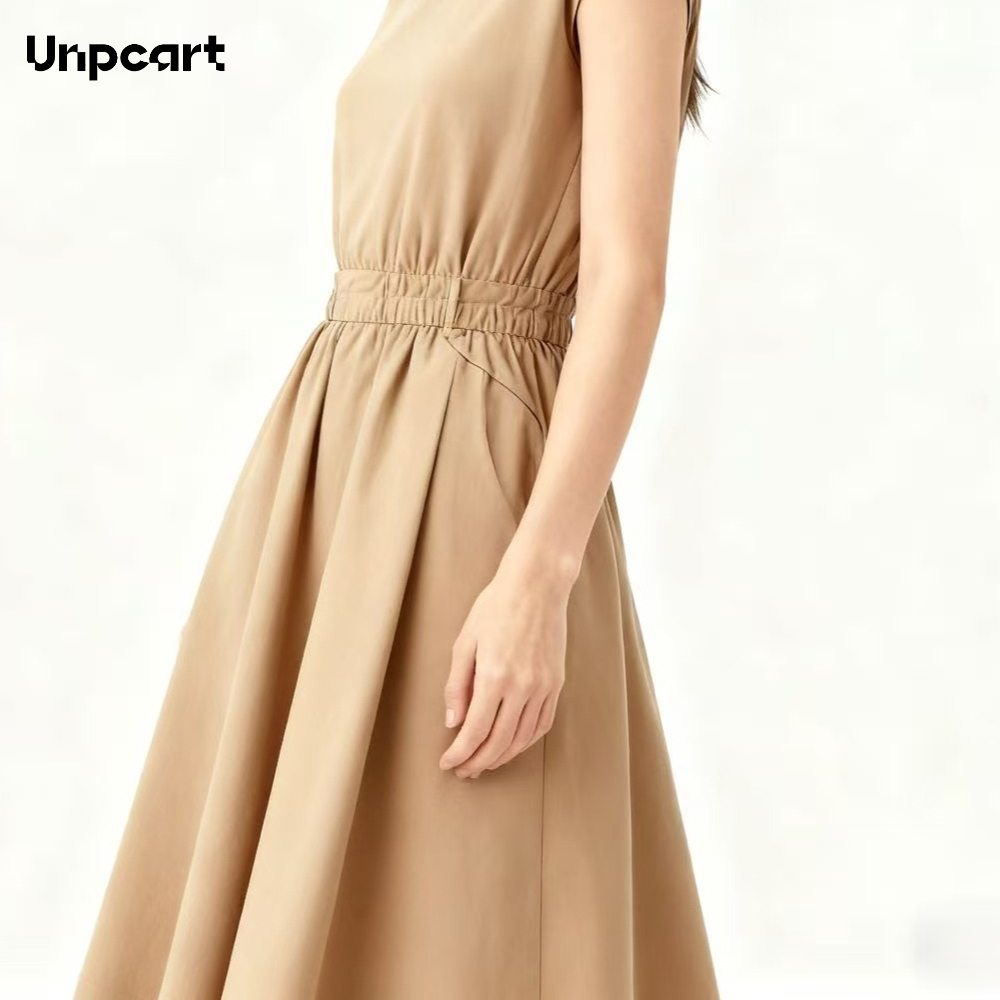 여성을 위한 카키색 드레스는 직장에 입기에도 심플하고 아름답습니다.